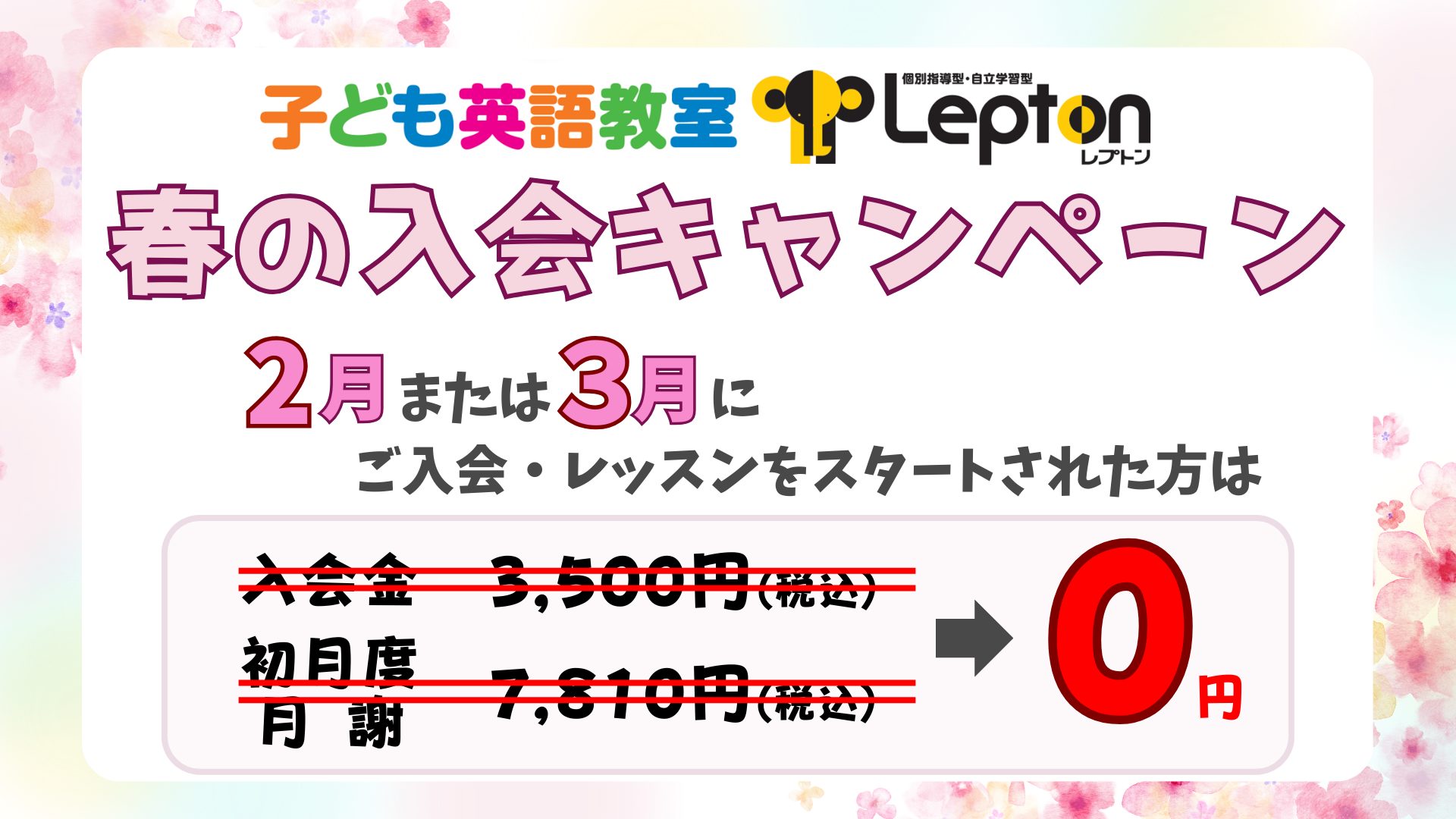 子ども英語教室Leptonでは、2月、3月に春の入会キャンペーンを行います!