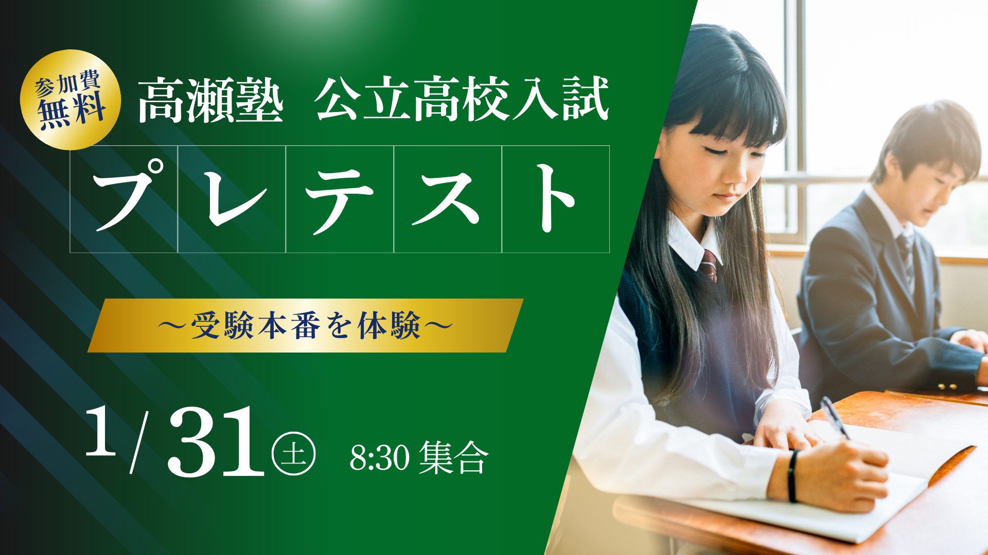 1月31日(土)に、公立高校入試を想定したプレテストを実施します!